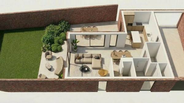 *3D tekeningen van tuin en interieur zijn een louter indicatief voorbeeld
